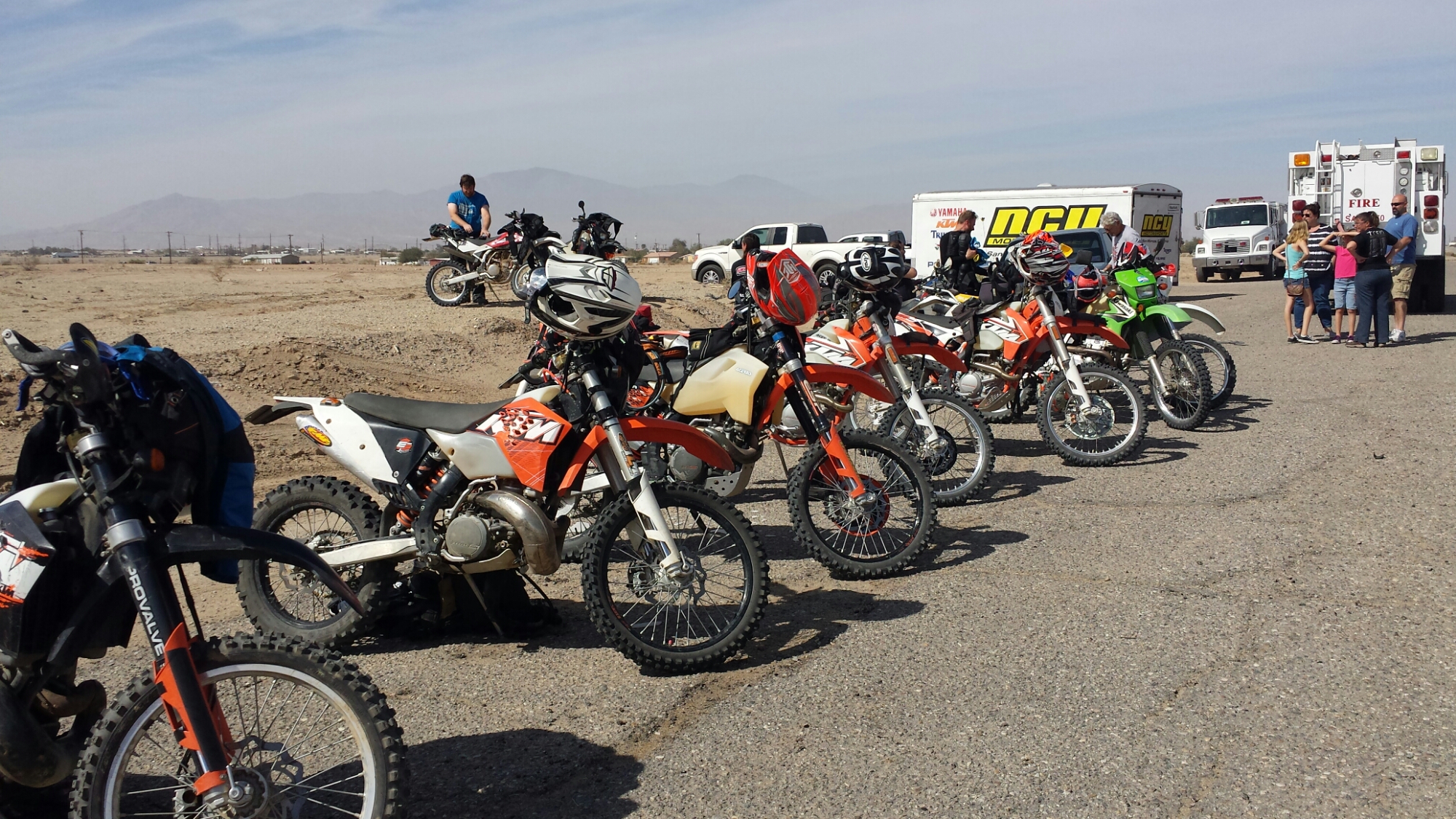 Continuing on after our little detour we ended up in some more sand washes just south of 78, we where all getting a little hungry so we decided to jump North on the highway and slab the rest to the lunch stop. Our lunch was provided by the Salton Sea fire department, burgers and dogs. When we rolled in to my surprise there was my whole family and best friend to meet us, sure was a wonderful to see and made for an awesome break. There in the top right of the photo below.